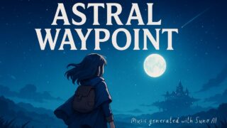 Astral Waypointは、異世界を旅するイメージで制作したLo-fi EDM楽曲。女性ボーカル×日本語英語ミックスで、MMO探索や作業用BGMに最適。