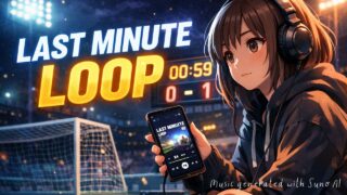 サッカーゲーム周回にハマるLoFi BGM「Last Minute Loop」を公開!女性ボーカル×日本語&英語ミックスで、集中とテンションUPを両立したループ向け楽曲です。