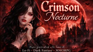 エンタメ🦇 Crimson Nocturne|ダークファンタジーMMORPG周回に捧ぐLoFi BGM ダークファンタジーMMORPGの無限周回をイメージした女性ボーカルLo-Fi BGM「Crimson Nocturne」。ヴァンパイア的世界観と没入感あるサウンドで、深夜の狩りや作業に最適。 2026.02.22BGMエンタメ